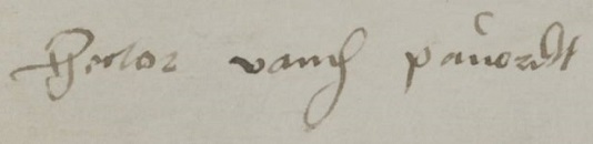 23 mei 1634: Jan van de Pavert, Derck Lippets en Arndt de Greeff als oom en momberen van de onmundige kinderen van sa. Jorden van de Pavert ende Jenneken Brandts. [GA, 0012 Gelderse Rekenkamer, inv.nr.1530, dig.afb.120-121]