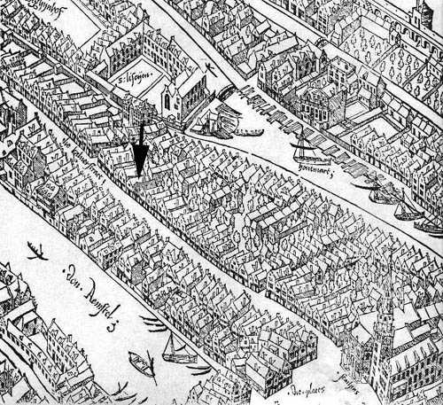 Het huis waar 50 jaar later de familie Santvoort in de Kalverstraat